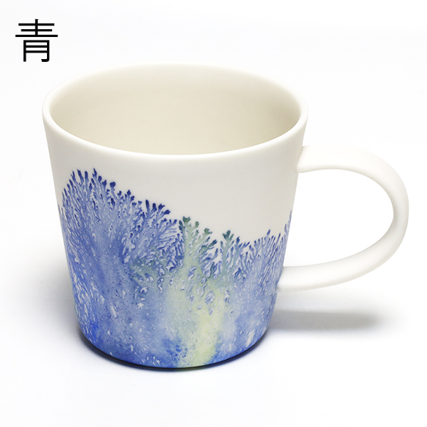 下絵具を3~4種類用いることで、透光性のある磁土に水彩画のようなグラデーションが溶けるようにして馴染みます。