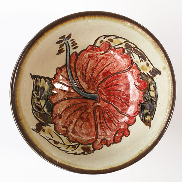 陶芸宮城 宮城三成 4寸茶碗・線彫りハイビスカス