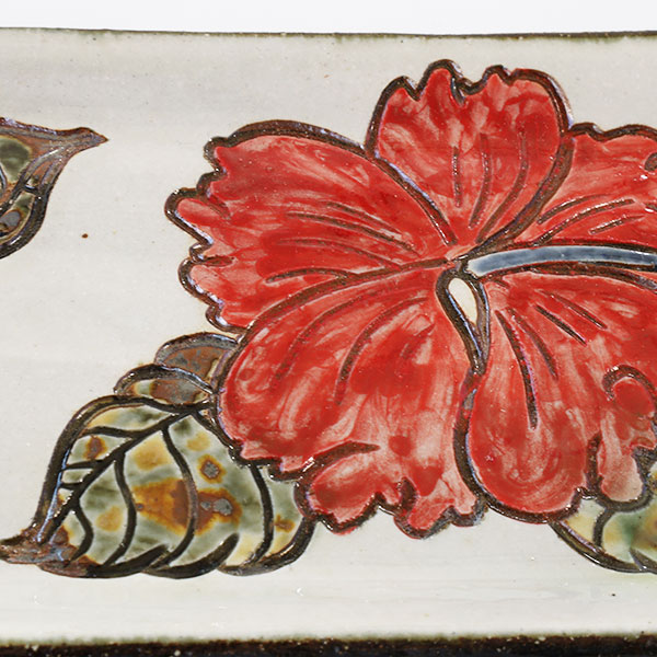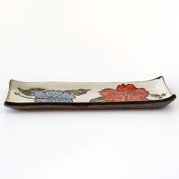 陶芸宮城 宮城三成 角皿・線彫りハイビスカス