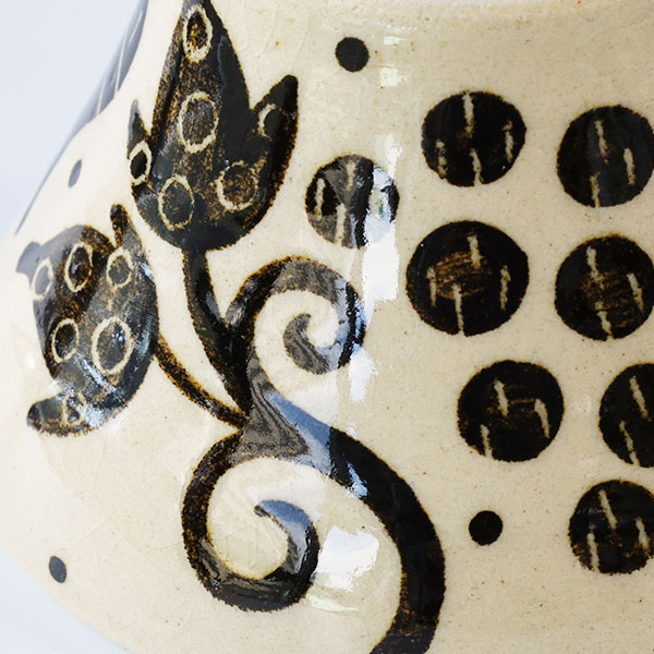 やちむんらしい、ぽってりした丸みのあるデザインに個性的な絵付けが魅力です。