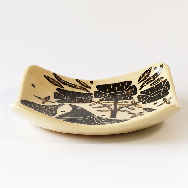 工房双子堂 四角皿・茶絵付け
