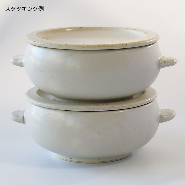 伸光窯 CORONオーブンボウル フタ皿付・白マット