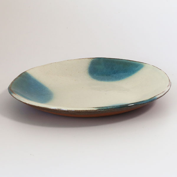 西表焼 青烽窯 丸皿・中・縁トルコ青
