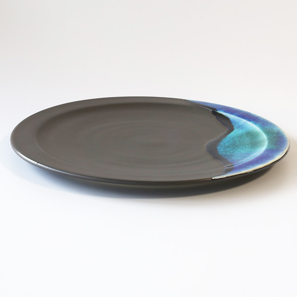 海花音工房 藤吉海月 黒マット海色プレート・大 8寸皿