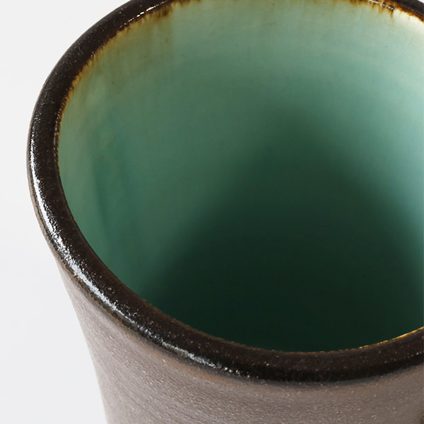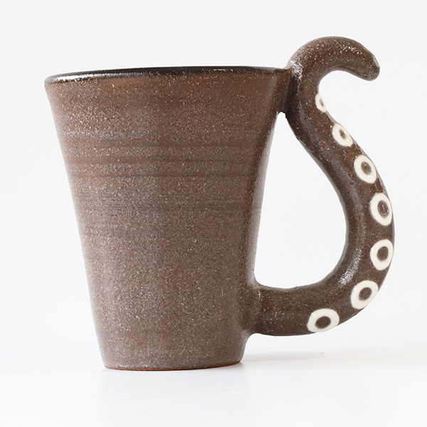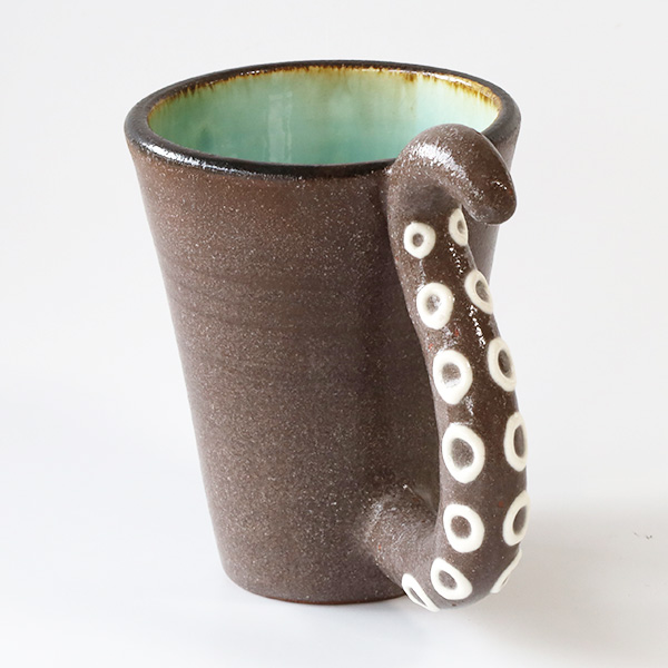 KAON Pottery タコマグカップ・メス 茶色&エメラルド