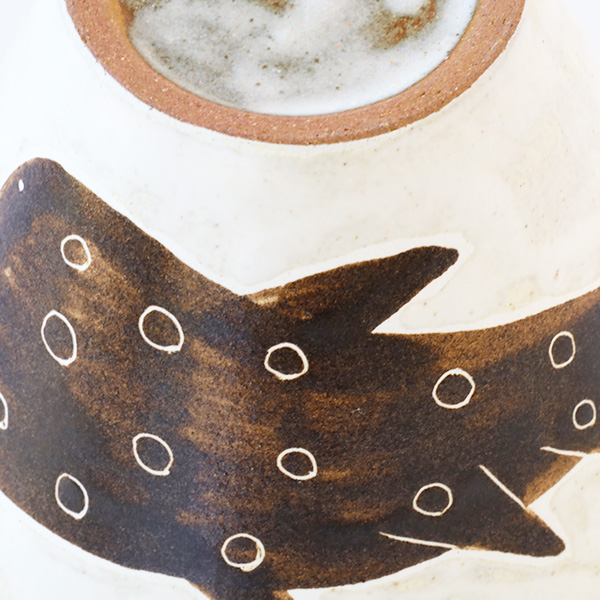 外側は、美ら海にすむ生き物たちの特徴を取り入れながら、ひとつひとつ釉薬を筆で塗っています。
