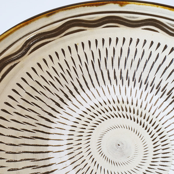 小鹿田焼らしく、力強い飛鉋の模様が特徴的です。