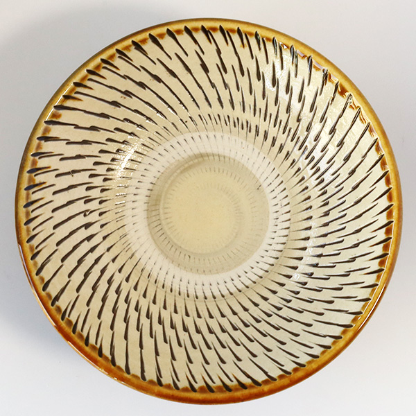 小鹿田焼らしく、力強い飛鉋の模様が特徴的です。