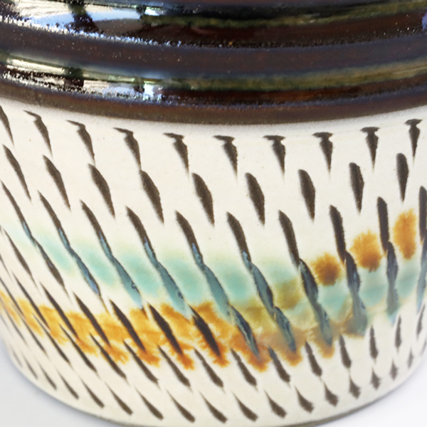 小鹿田焼らしく、力強い飛鉋の模様が特徴的です。