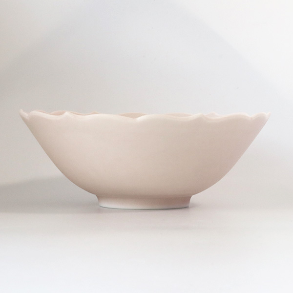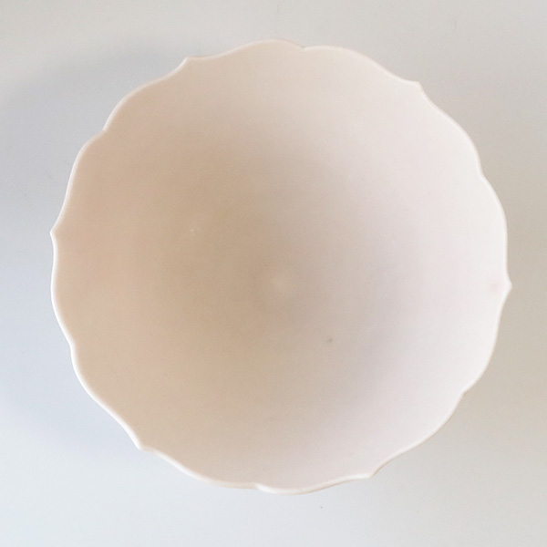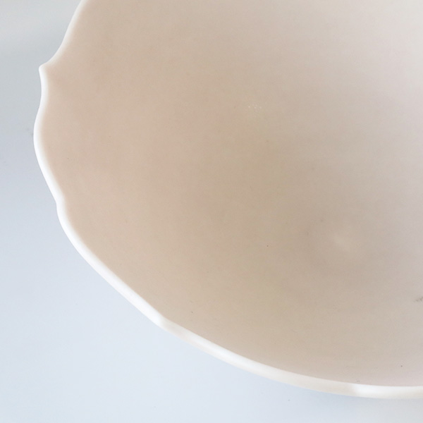 透光性の強い磁土を使用しており、釉薬は淡い色彩の磨りガラスのような質感です。