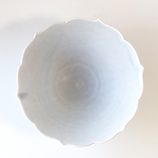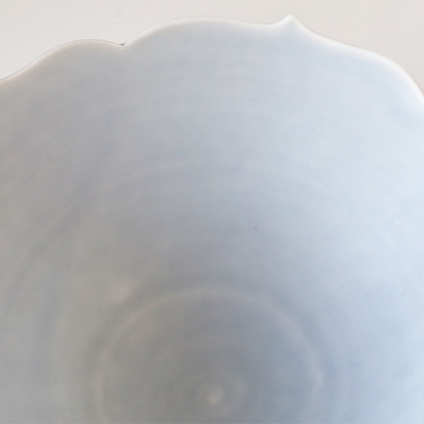透光性の強い磁土を使用しており、釉薬は淡い色彩の磨りガラスのような質感です。