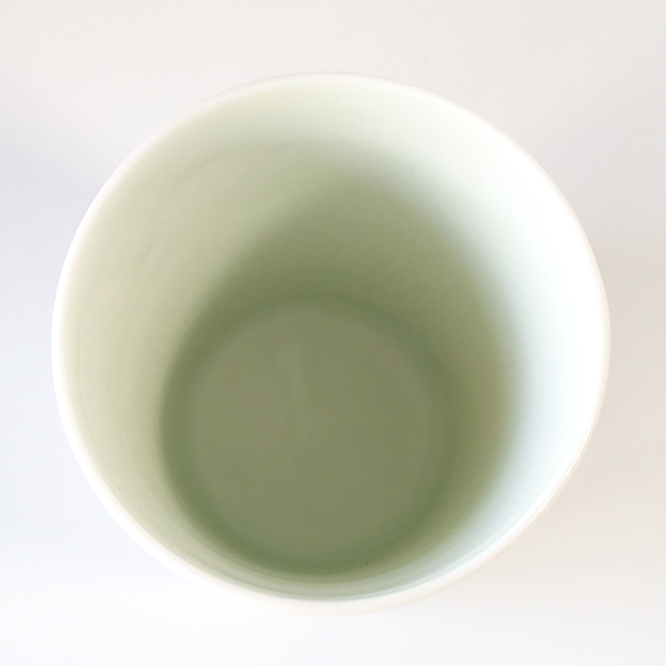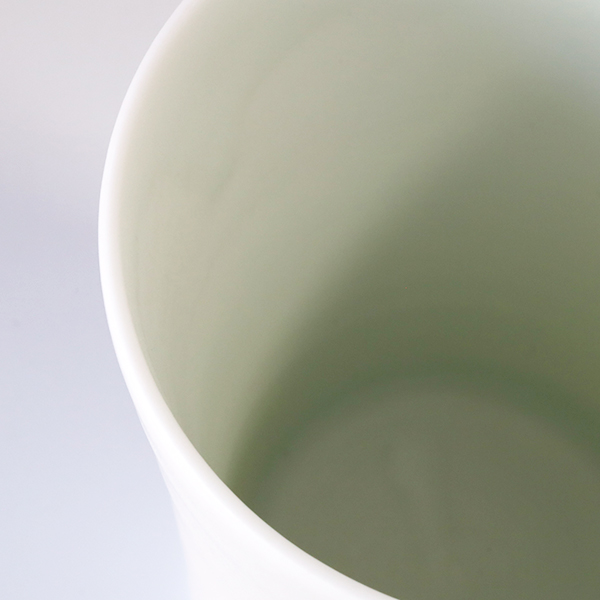 透光性の強い磁土を使用しており、釉薬は淡い色彩の磨りガラスのような質感です。