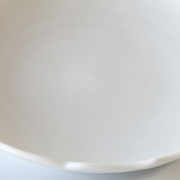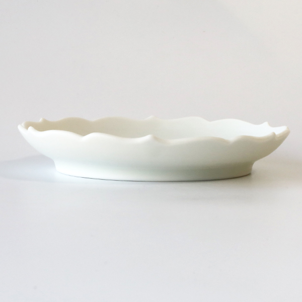 透光性の強い磁土を使用しており、釉薬は淡い色彩の磨りガラスのような質感です。