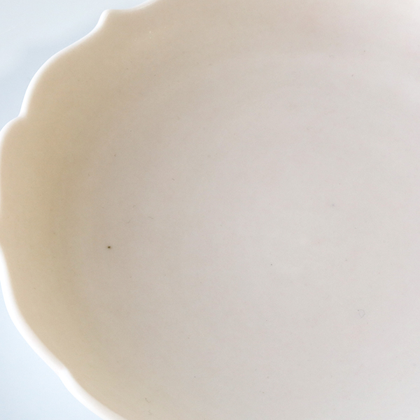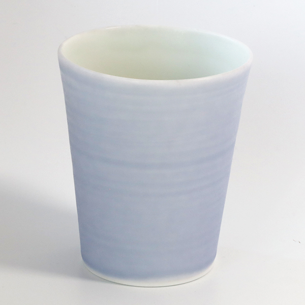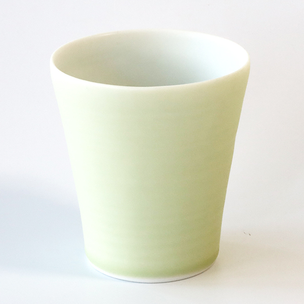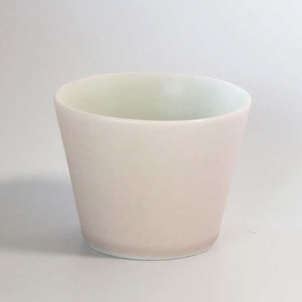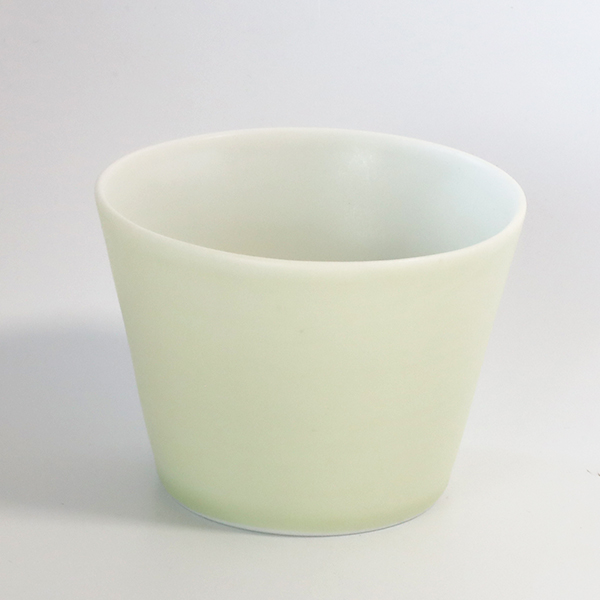 透光性の強い磁土を使用しており、釉薬は淡い色彩の磨りガラスのような質感です。