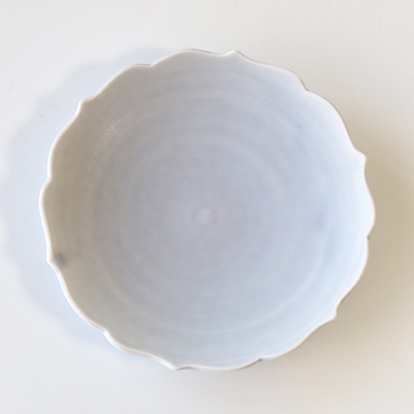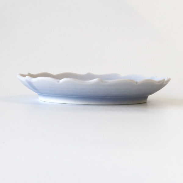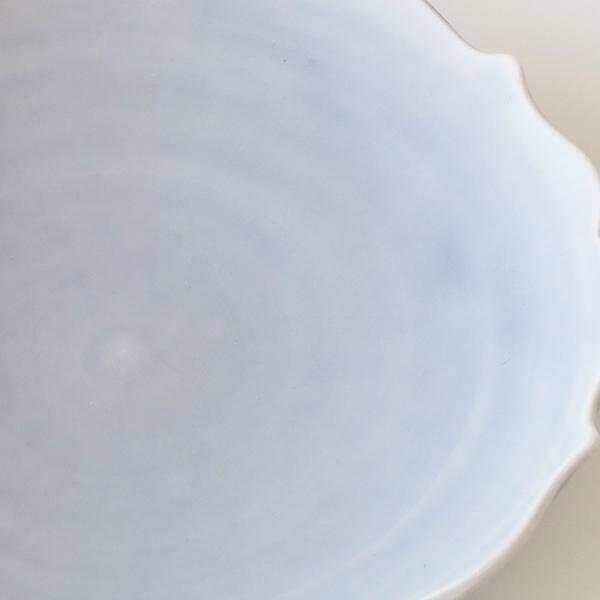 透光性の強い磁土を使用しており、釉薬は淡い色彩の磨りガラスのような質感です。