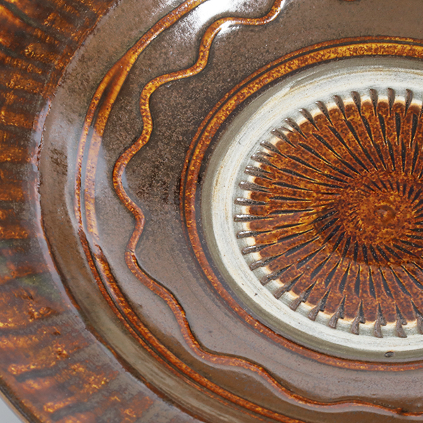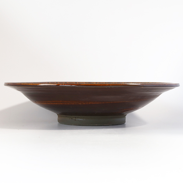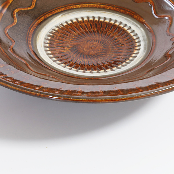 柳瀬元寿窯 8寸中深リム皿・指かき飴釉