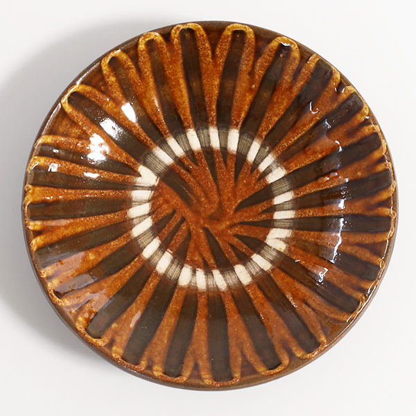 柳瀬元寿窯 4寸皿・縦指かき飴釉