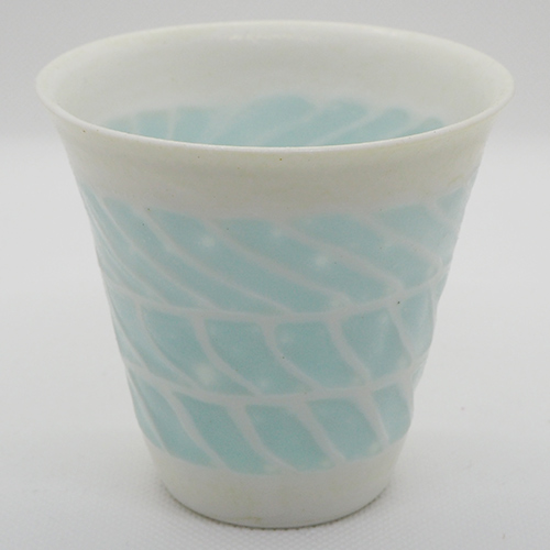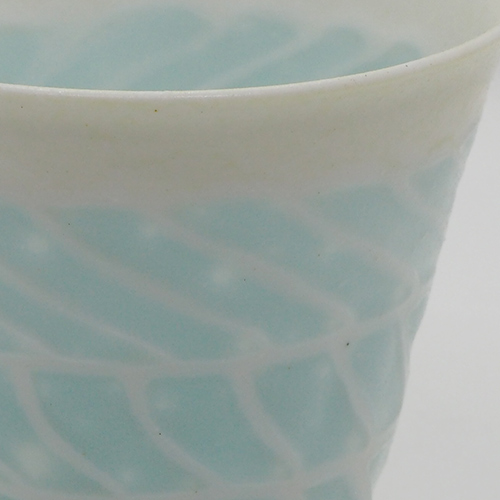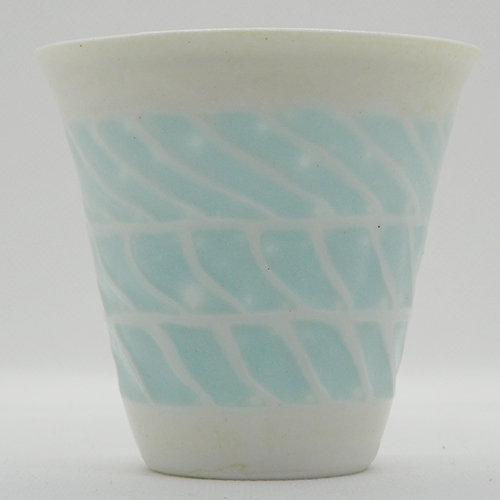 磁土に貝殻を混ぜてガラスのような透明感を生み出しています。