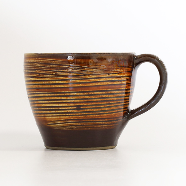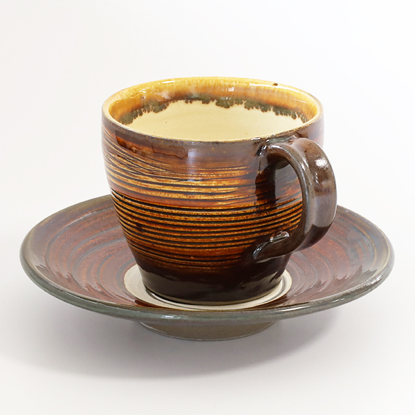 柳瀬元寿窯 コーヒーカップ&ソーサー・大・飴釉横線