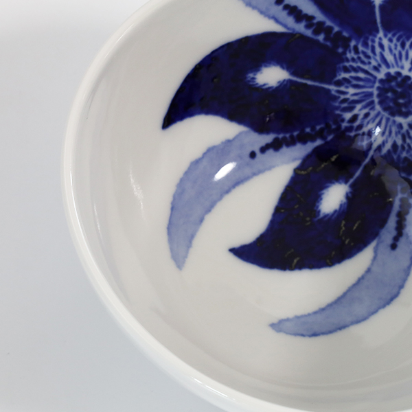 砥部焼らしい、少し厚みのあるぽってりとした器にエレガントな絵付けが魅力です。