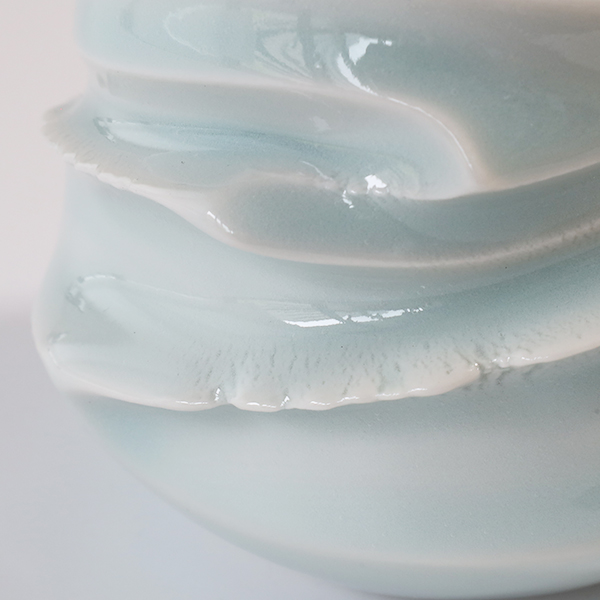 青磁・白磁の作品と共に温かみのある器を作りたいと、陶石に工房近くの陶土を加えています。