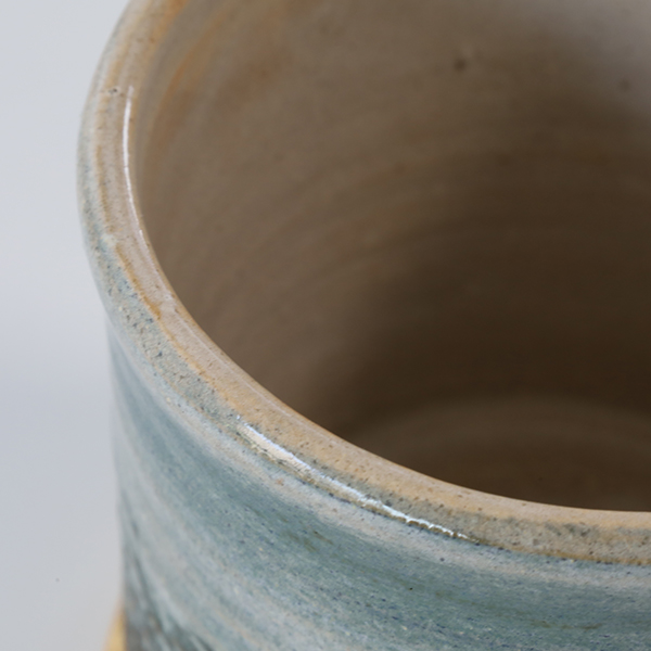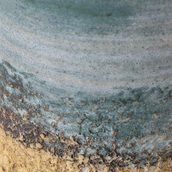 沖縄県読谷村で作陶されている作家です。特徴的なオリジナルのブルーの釉薬を使用しているので、沖縄の自然を感じる、シンプルなのに一度見たら忘れない印象に残る器です。厚みがあるので、しっかりした重みがあります。