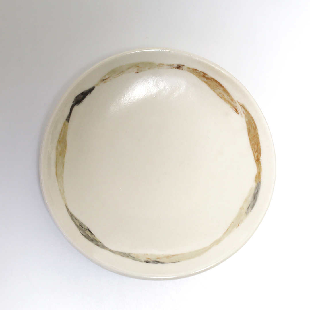 磁土に貝殻を混ぜてガラスのような透明感を生み出しています。