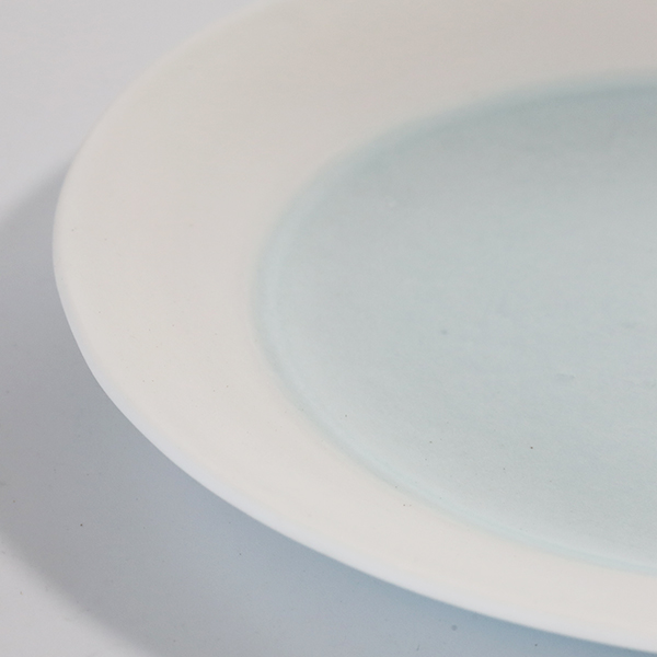 通常、磁器土に貝殻を混ぜると磁土と貝のカルシウムが反応して溶けて崩れてしまいますが、調合や焼き方を工夫することで器の形を保ち美しい作品が生まれます。
