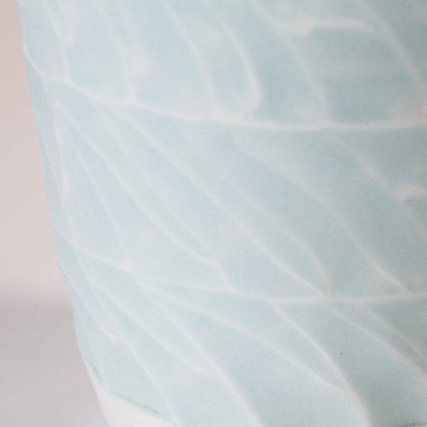 磁土に貝殻を混ぜてガラスのような透明感を生み出しています。