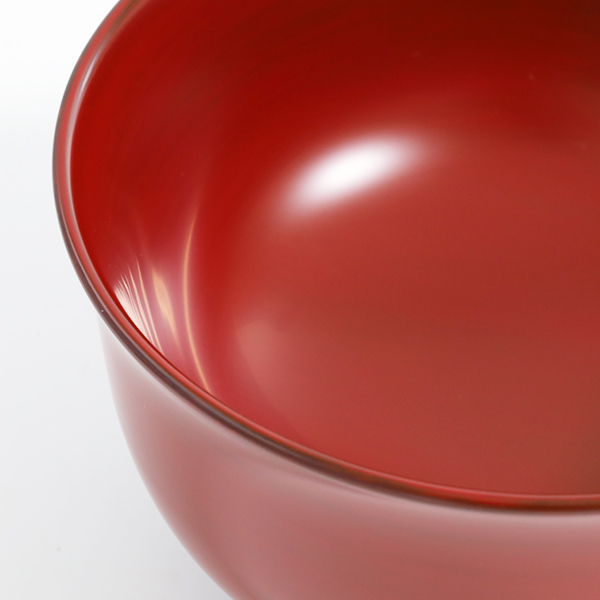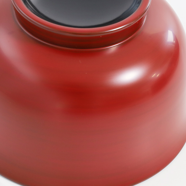 朱の下に塗った漆の黒が、縁や際などにうっすらと透けて見えて趣深く、朱ですが明る過ぎない落ち着いた色味です。