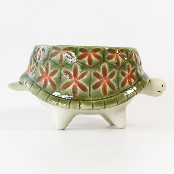 愛らしい表情のカメの植木鉢です。