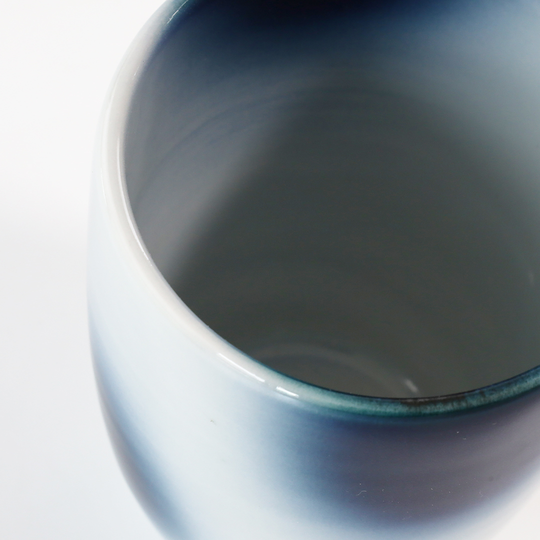 砥部焼の伝統を守りながらも、深海のようなグラデーションのブルーが特徴のヨシュア工房。