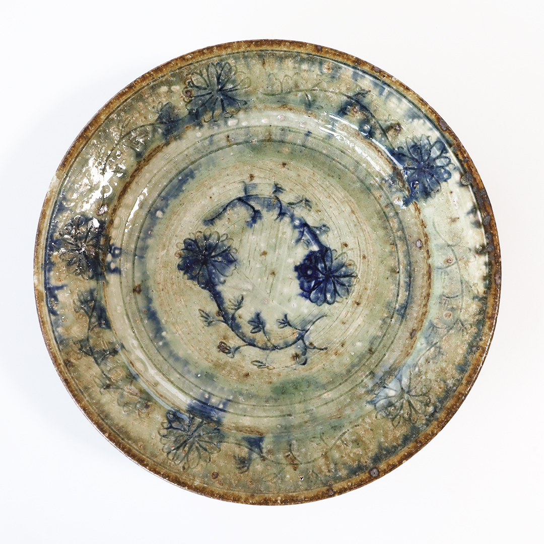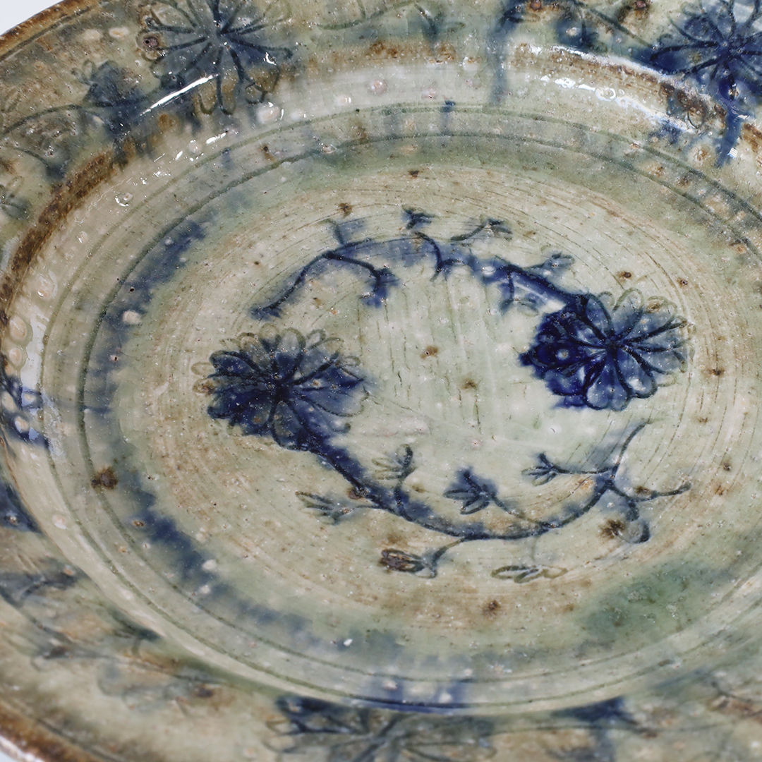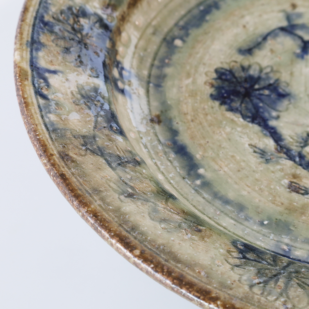 絵柄の上から灰釉をかけているので、絵柄が滲みアンティークな趣の味のある器になっています。