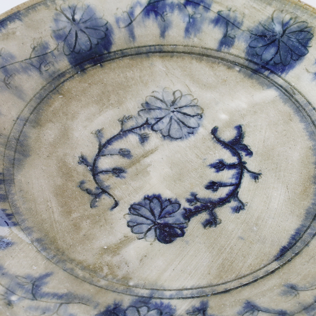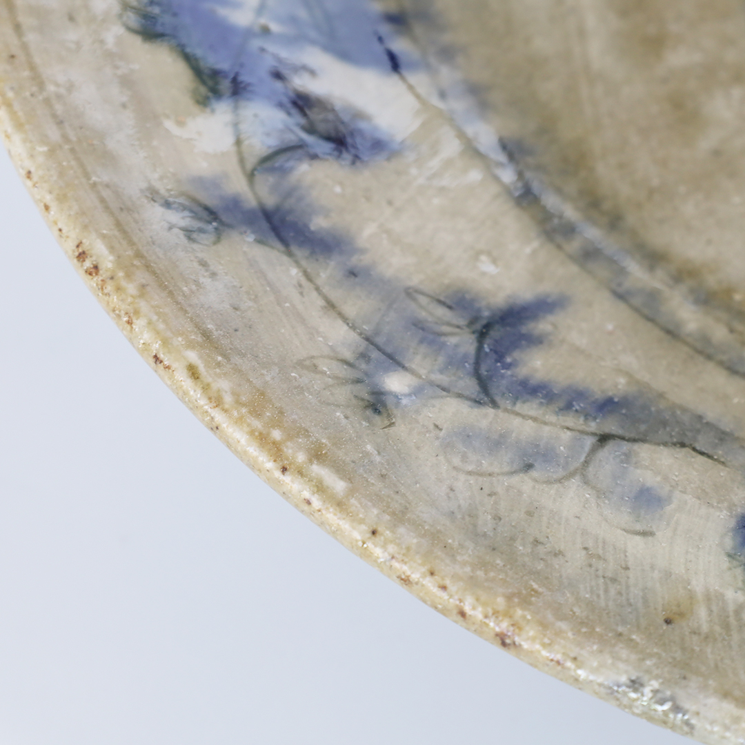 絵柄の上から灰釉をかけているので、絵柄が滲みアンティークな趣の味のある器になっています。