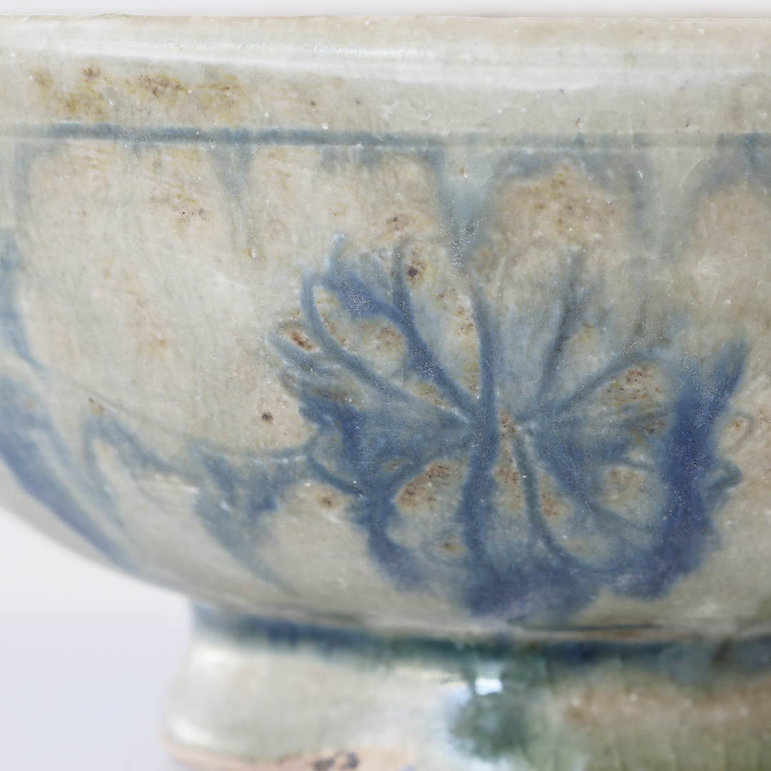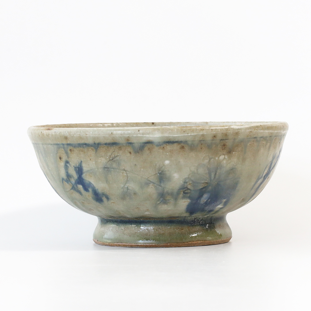 絵柄の上から灰釉をかけているので、絵柄が滲みアンティークな趣の味のある器になっています。