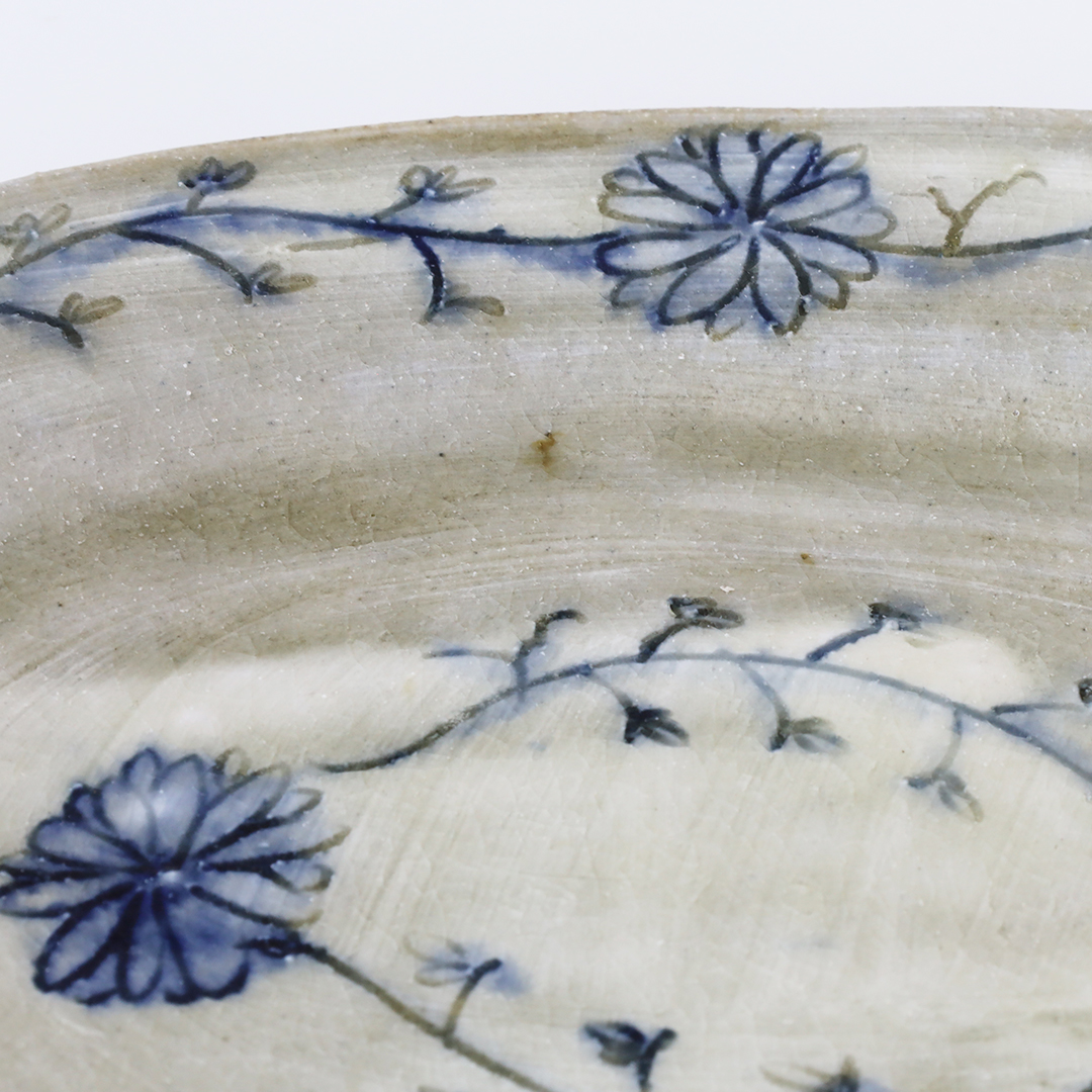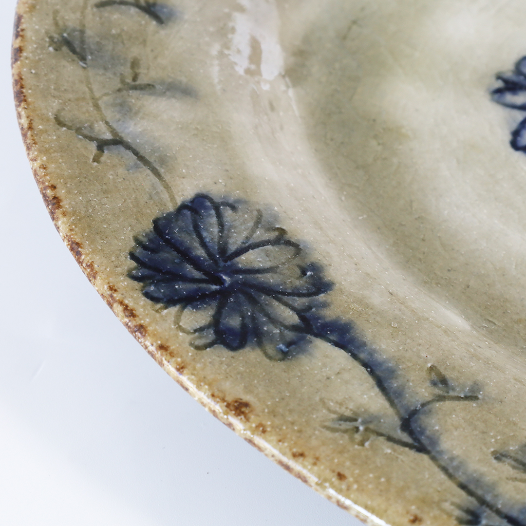 絵柄の上から灰釉をかけているので、絵柄が滲みアンティークな趣の味のある器になっています。