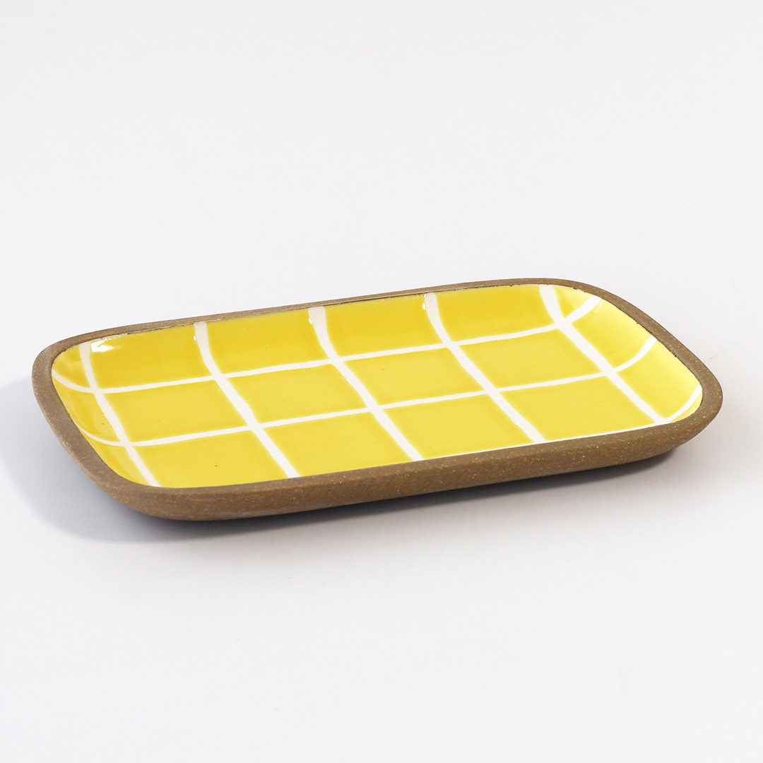 一翠窯 角皿・小 タイル・黄