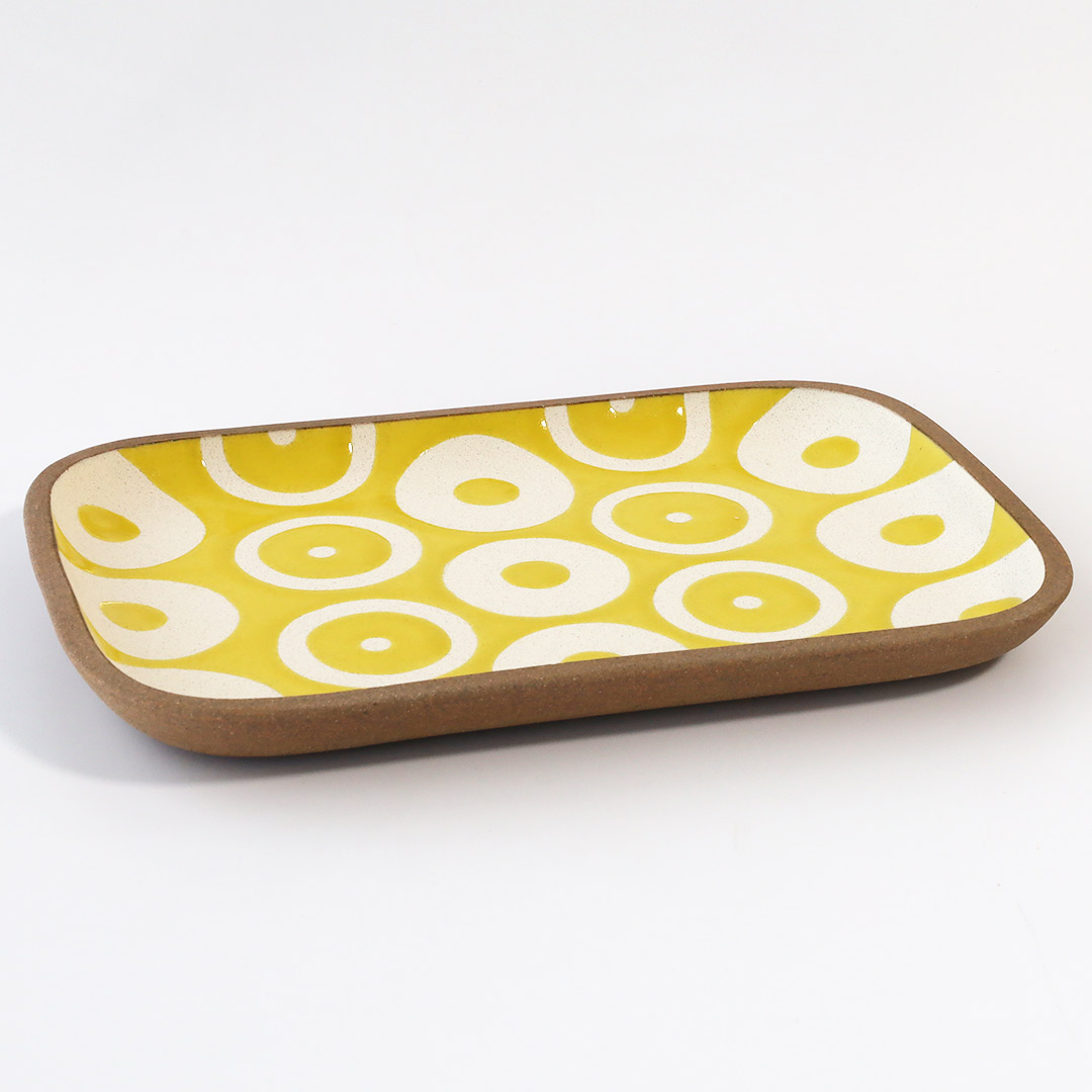 カラフルでポップな模様の角皿が代表作の工房です。