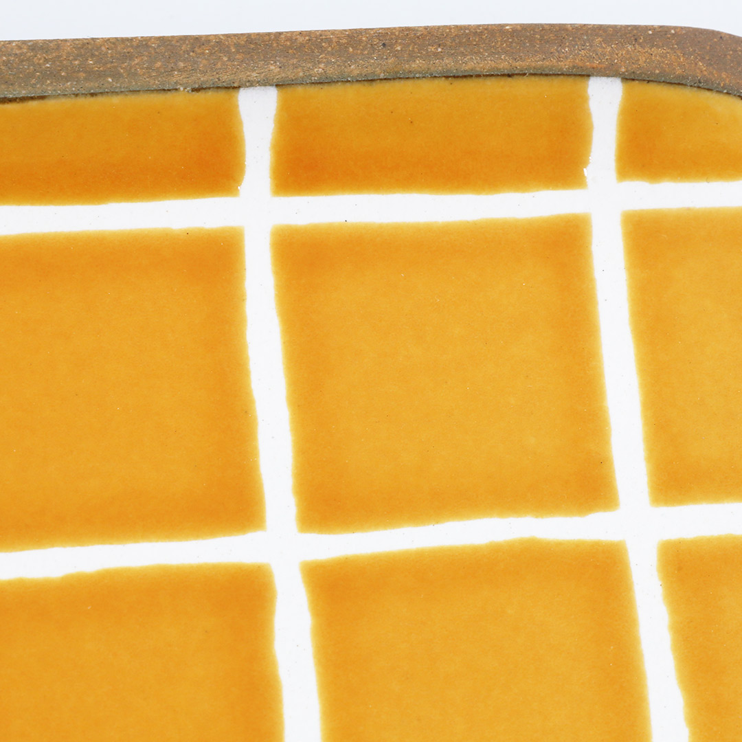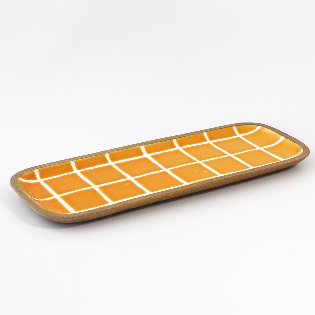 一翠窯 角皿・長 タイル・橙