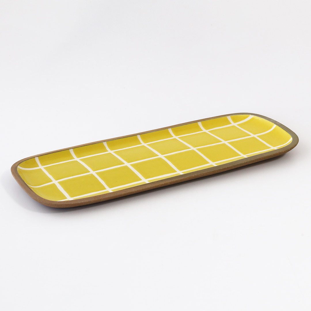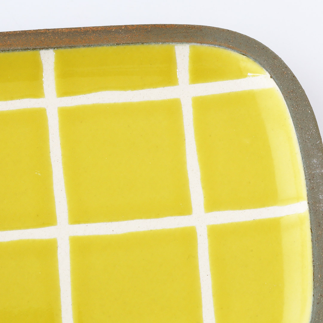 一翠窯 角皿・長 タイル・黄
