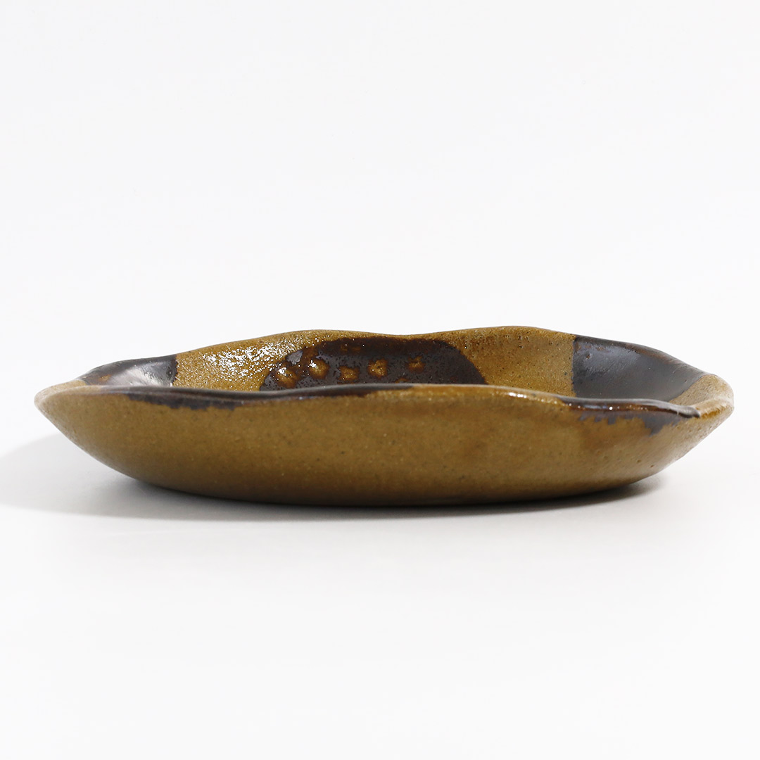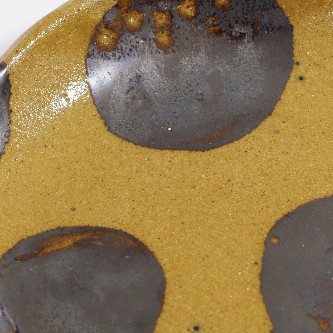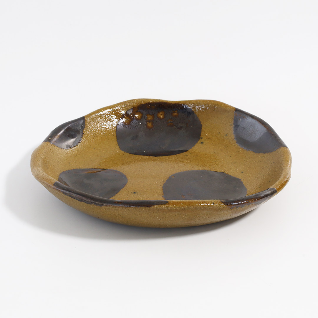 土工房・陶糸 5寸皿・茶・水玉茶