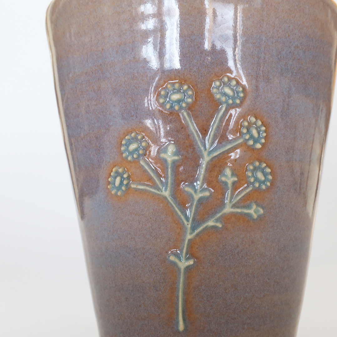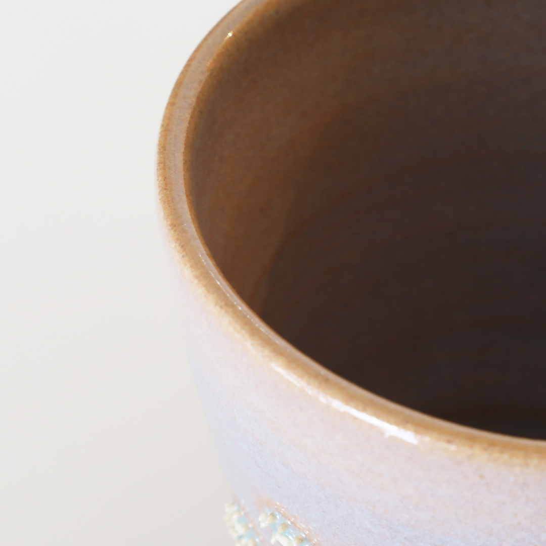 ワンポイントの植物が萩焼の色味と相まって可愛らしいカップです。