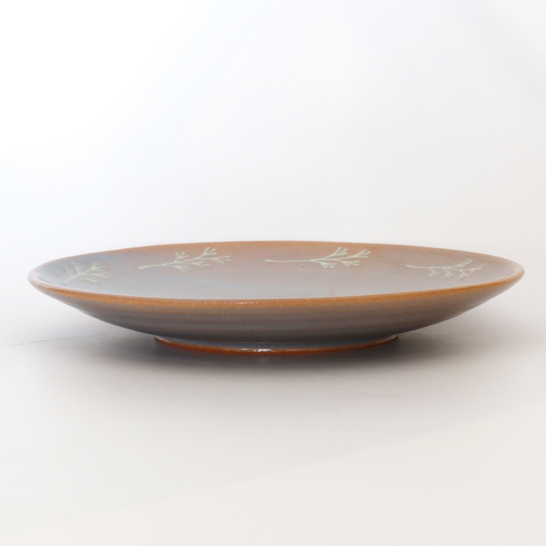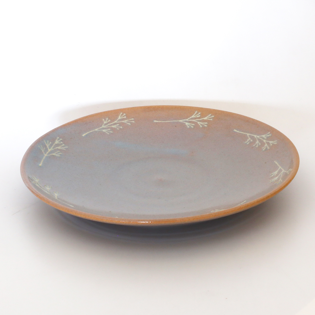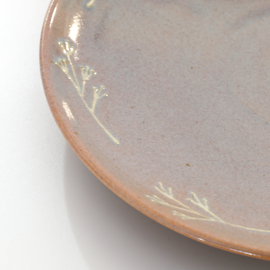 ワンポイントの植物が萩焼の色味と相まって可愛らしいお皿です。