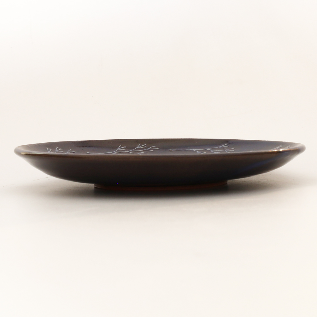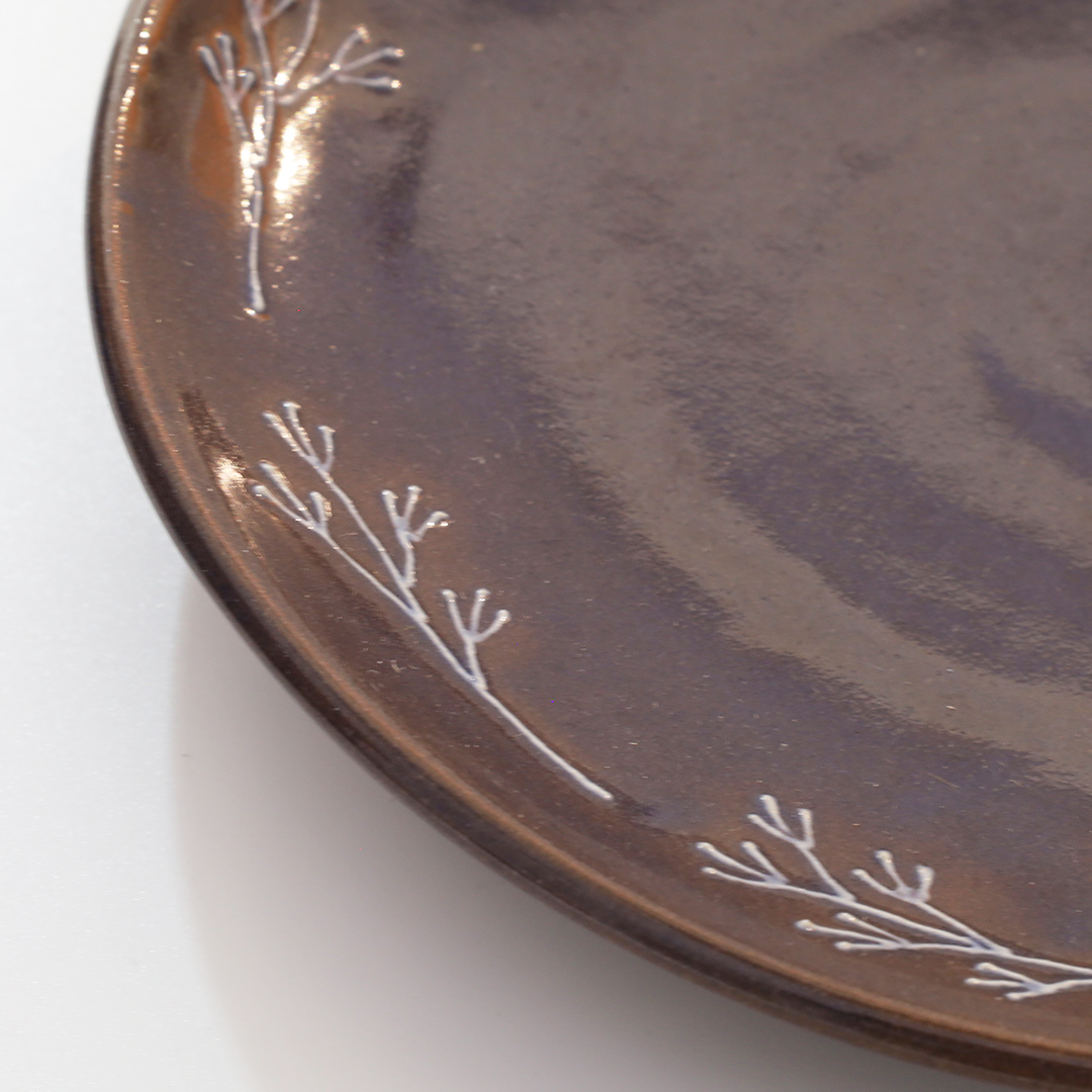 ワンポイントの植物が萩焼の色味と相まって可愛らしいお皿です。