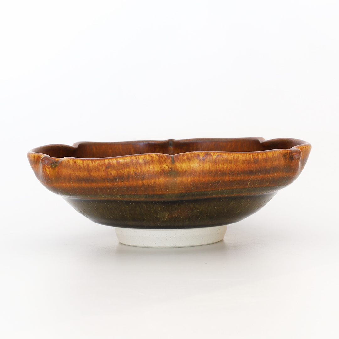 北側雄一 平向付(輪花3弁)・窯変蕎麦釉