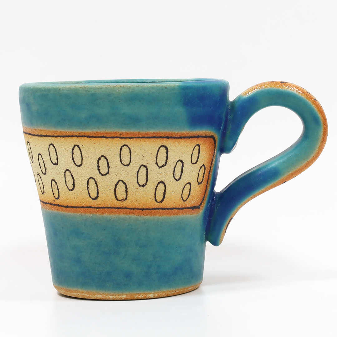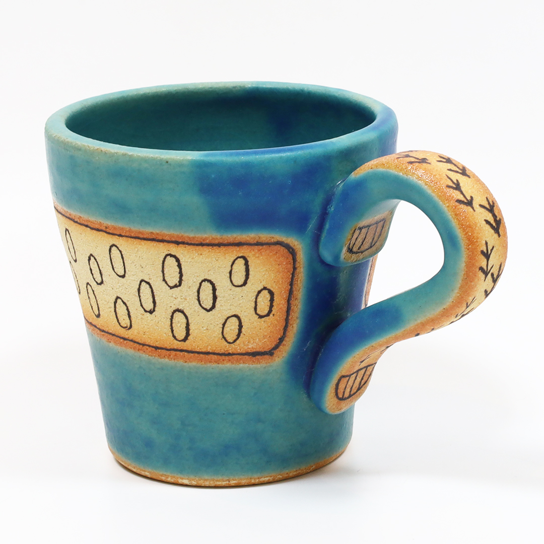 やちむんらしい、ぽってりした丸みのあるデザインに個性的な絵付けが魅力です。