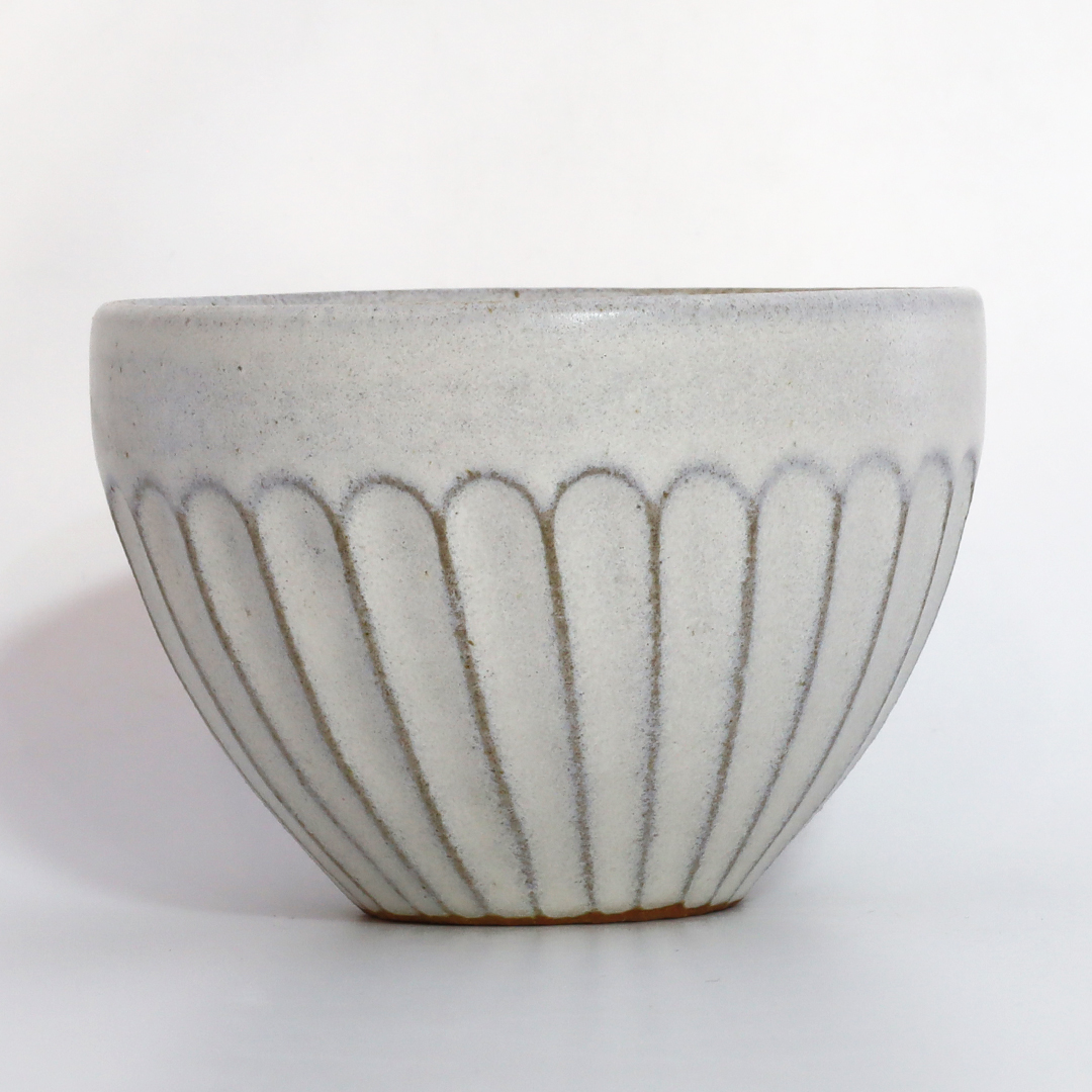 樹ノ音工房 白マット太しのぎカフェオレボウル