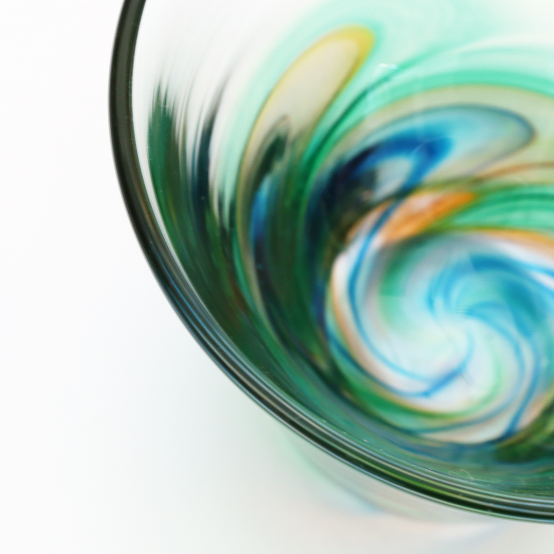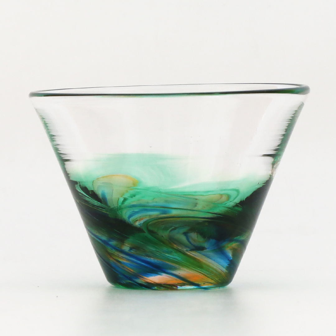 伊豆味ガラス工房 うみのおと ピーコックぐい呑み・緑
