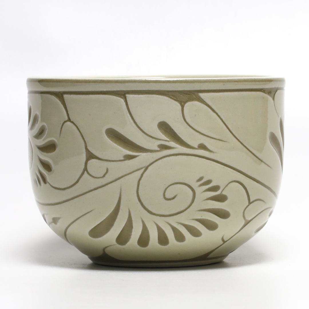 現陶主は六代目、伝統工芸士でもある「高江洲忠」で、線彫技法を得意とした日用器や、五代目で、現代の名工でもあった「高江洲育男」の獅子の型を受け継いだ獅子づくりを得意としています。