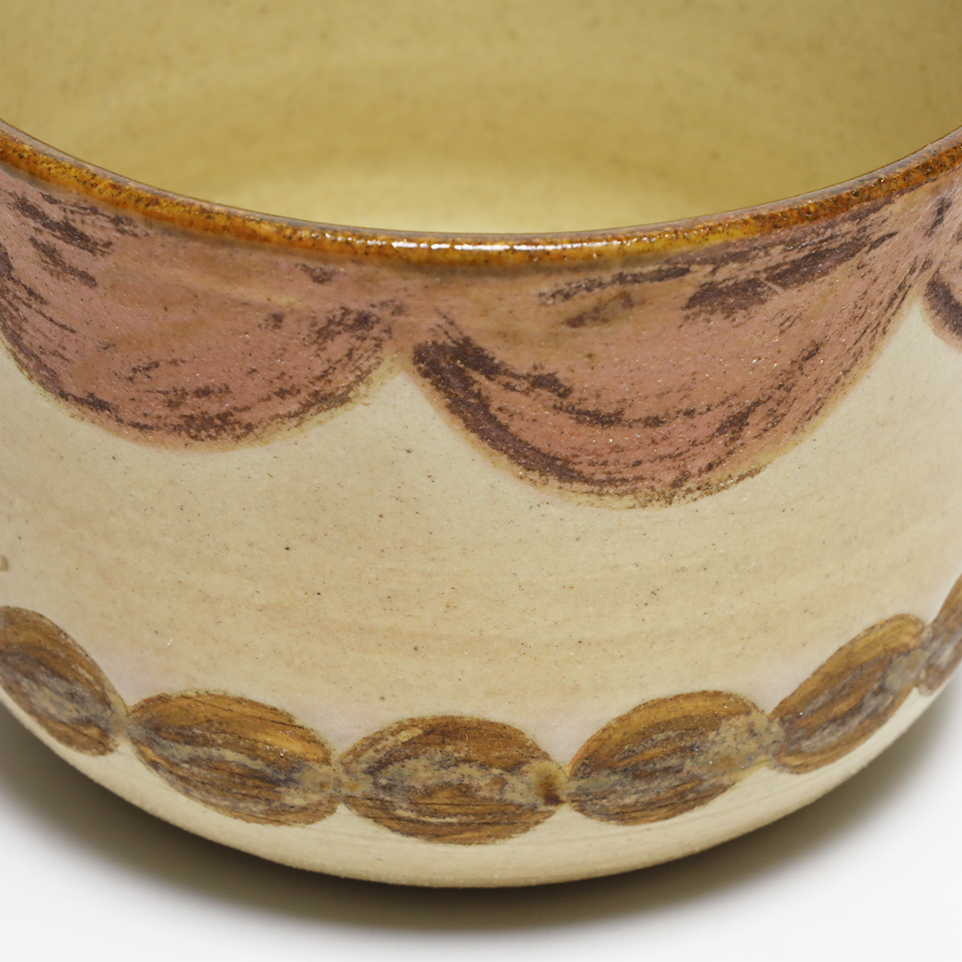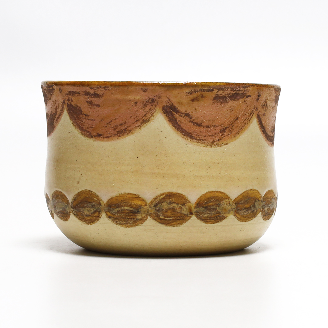 土っぽさを残した質感にカラフルな色合いの絵付けをしています。